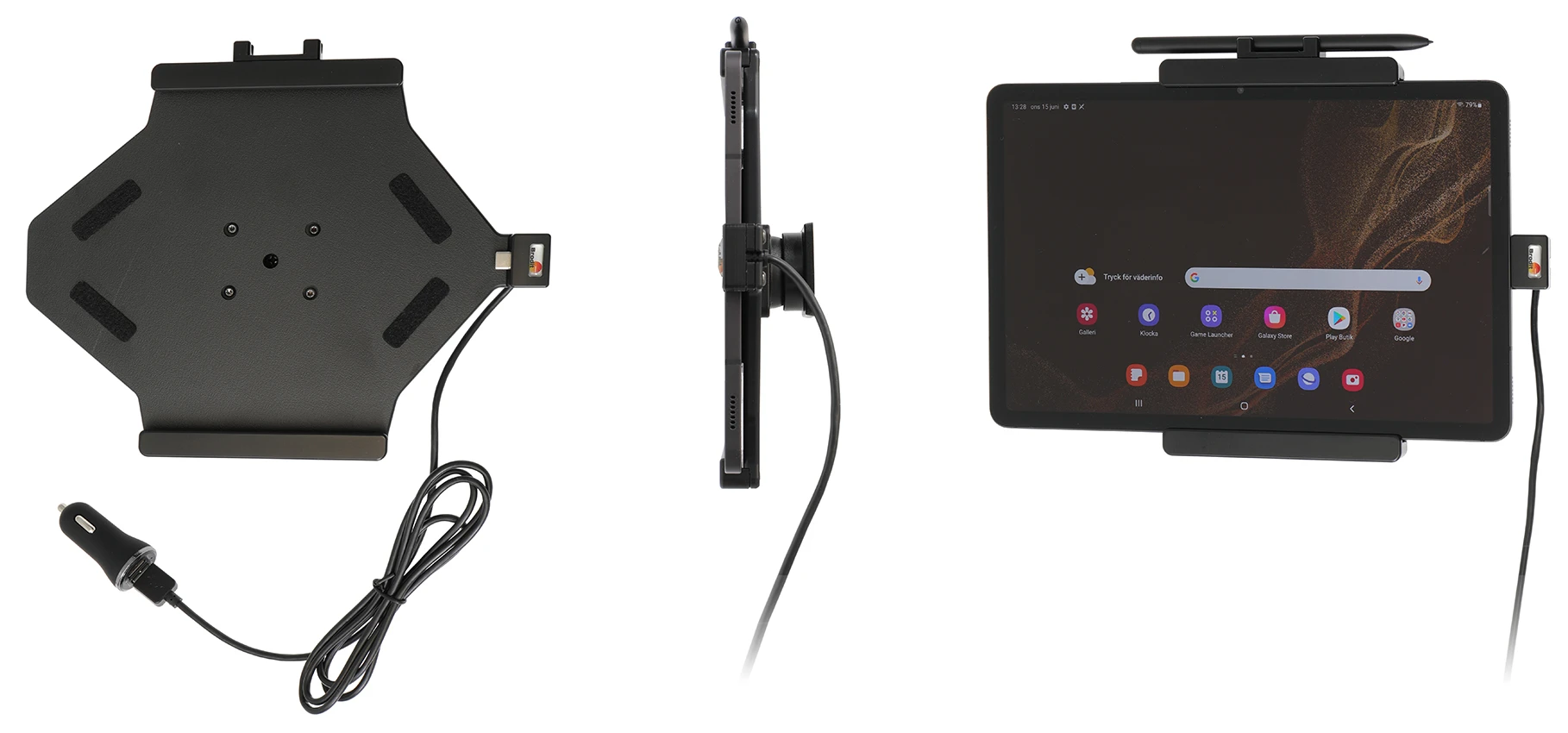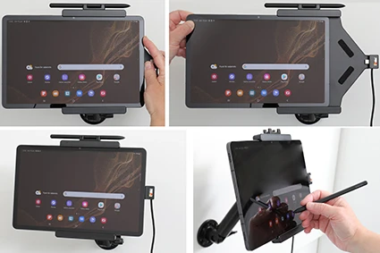 An installation of a tablet onto a vehicle’s dashboard is always done on the customer’s own responsibility. Brodit recommends to use tablets on the car’s headrest, installed onto a Brodit headrest mount.