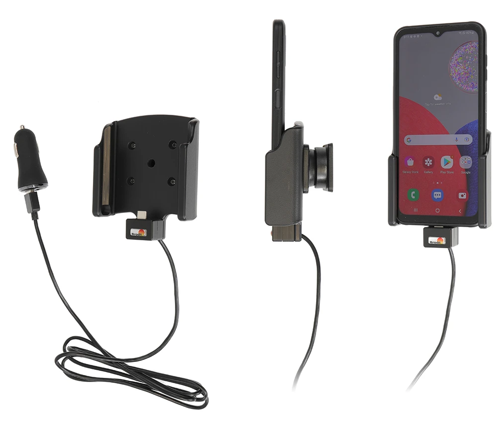 Keep your phone's battery fully charged in an active holder, always within easy sight and reach! Neat, discreet and convenient. Custom made with a perfect, firm fit. With USB-A cable with cig-plug adapter, choose to connect either to the vehicle's USB-A outlet or the 12/24V socket.The cig-plug adapter has two USB-A ports: QC 3.0A + 2.4A. You have full access to the camera and all buttons when the device is in the holder. It is easy to slide the device into place in the holder so it connects to the charging, and to take it out of the holder when leaving the car.