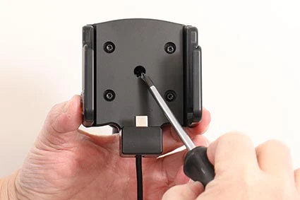 The holder is equipped with a tilt swivel so you can easily adjust the angle for better viewing. Tilts 17° and swivels 360°. Mounting plate 42x50 mm with 4 mm AMPS-holes. Made of high grade black ABS plastic. Color: black. Made in Sweden. Attach onto a ProClip Mounting Platform or a Pedestal Mount.