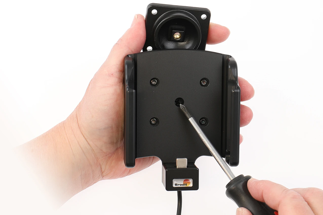 The holder is equipped with a tilt swivel so you can easily adjust the angle for better viewing, or switch between portrait and landscape mode. Tilts 17° and swivels 360°. Mounting plate 42x50 mm with 4 mm AMPS-holes. Made of high grade black ABS/Acetal plastic. Made in Sweden. Attach onto a ProClip Mounting Platform or a Pedestal Mount.