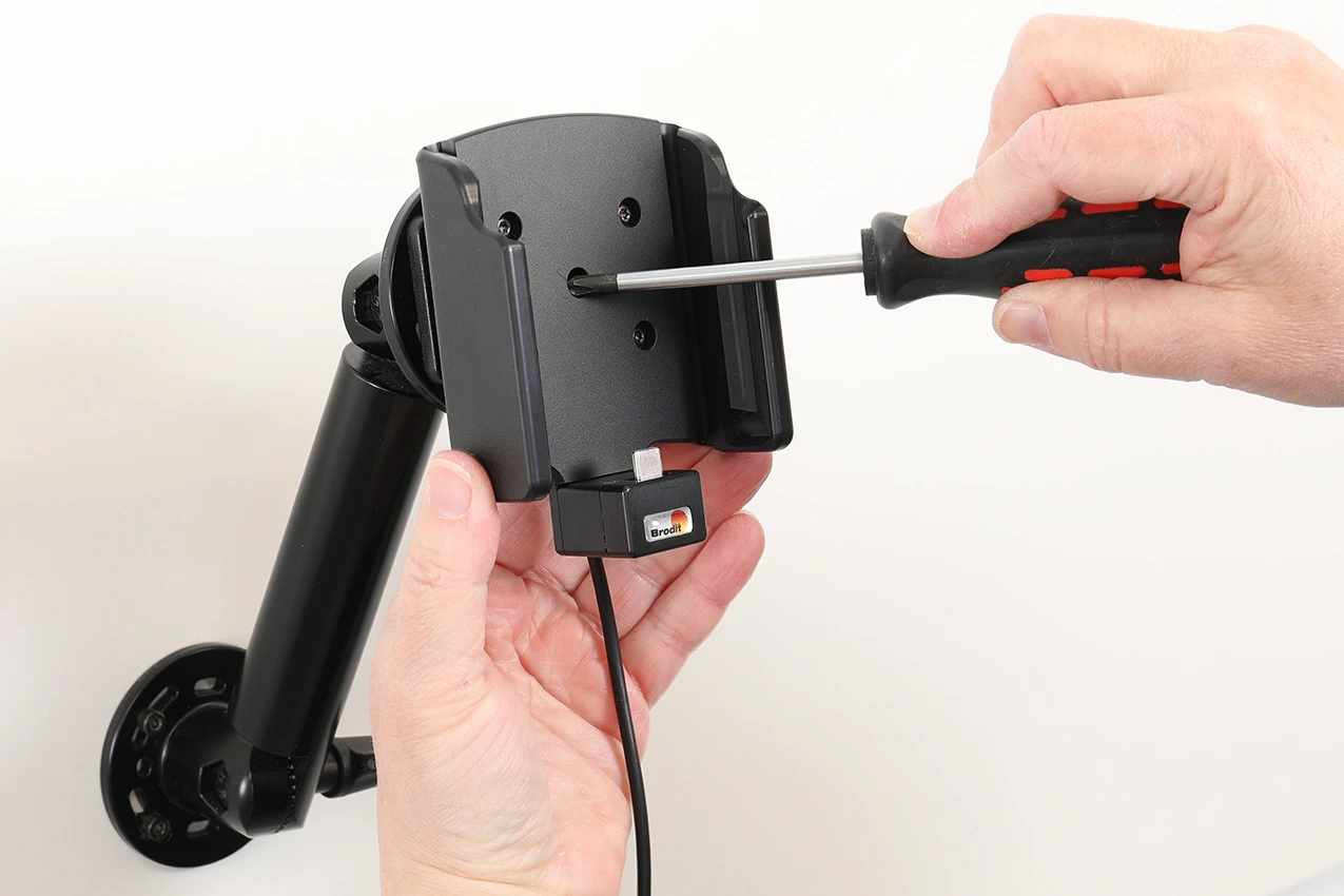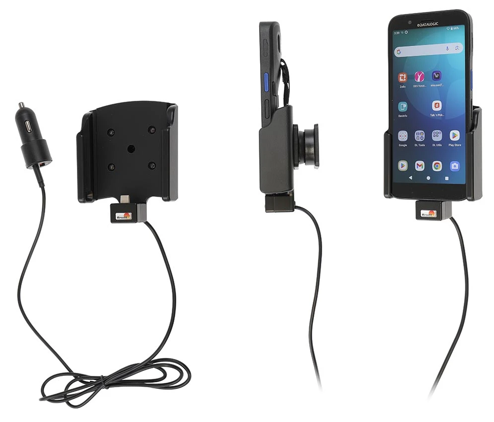 Keep your phone's battery fully charged in an active holder, always within easy sight and reach! Neat, discreet and convenient. Custom made with a perfect, firm fit. With USB-cable with cig-plug adapter, choose to connect either to the vehicle's USB outlet or the 12/24V socket. The cig-plug adapter has two USB ports: Type-A and Type-C. You have full access to the camera and all buttons when the device is in the holder. It is easy to slide the device into place in the holder so it connects to the charging, and to take it out of the holder when leaving the car.