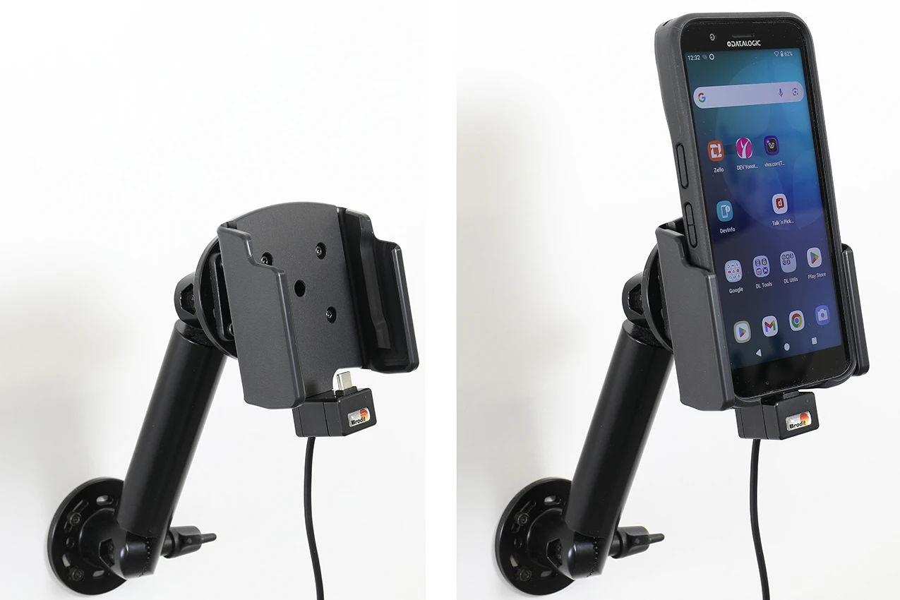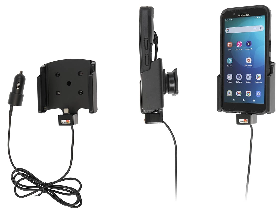 Keep your phone's battery fully charged in an active holder, always within easy sight and reach! Neat, discreet and convenient. Custom made with a perfect, firm fit. With USB-cable with cig-plug adapter, choose to connect either to the vehicle's USB outlet or the 12/24V socket. The cig-plug adapter has two USB ports: Type-A and Type-C. You have full access to the camera and all buttons when the device is in the holder. It is easy to slide the device into place in the holder so it connects to the charging, and to take it out of the holder when leaving the car.