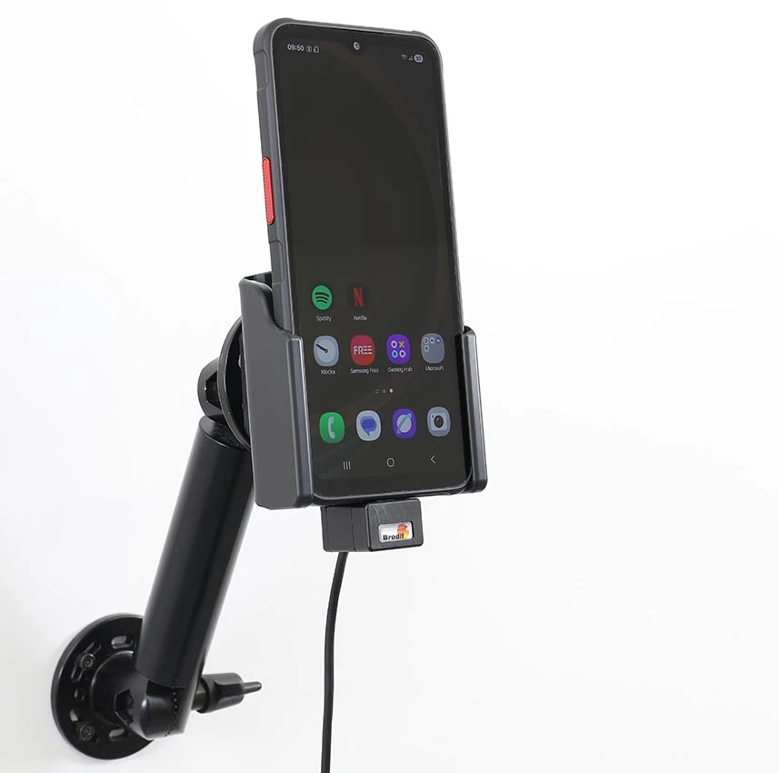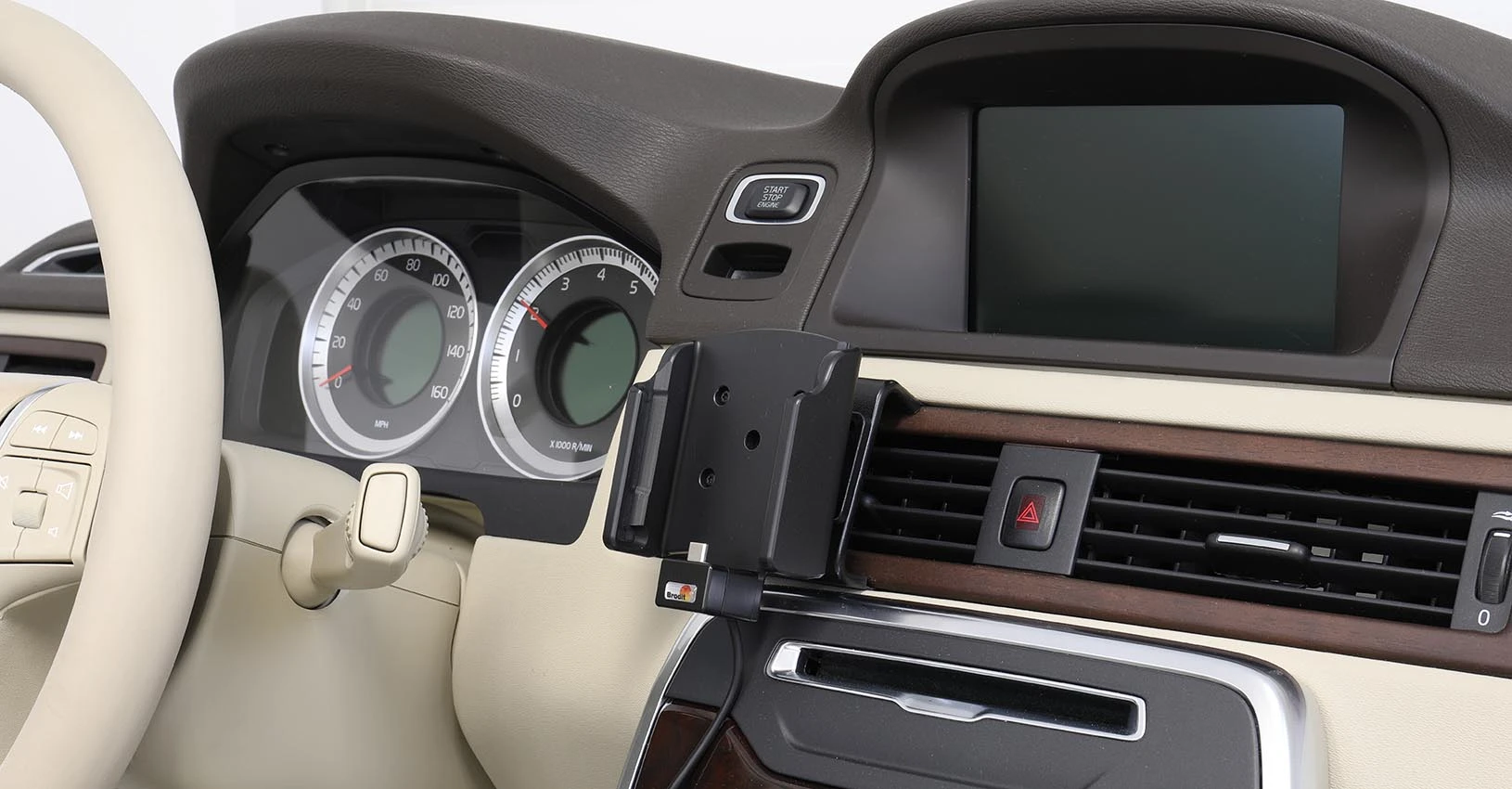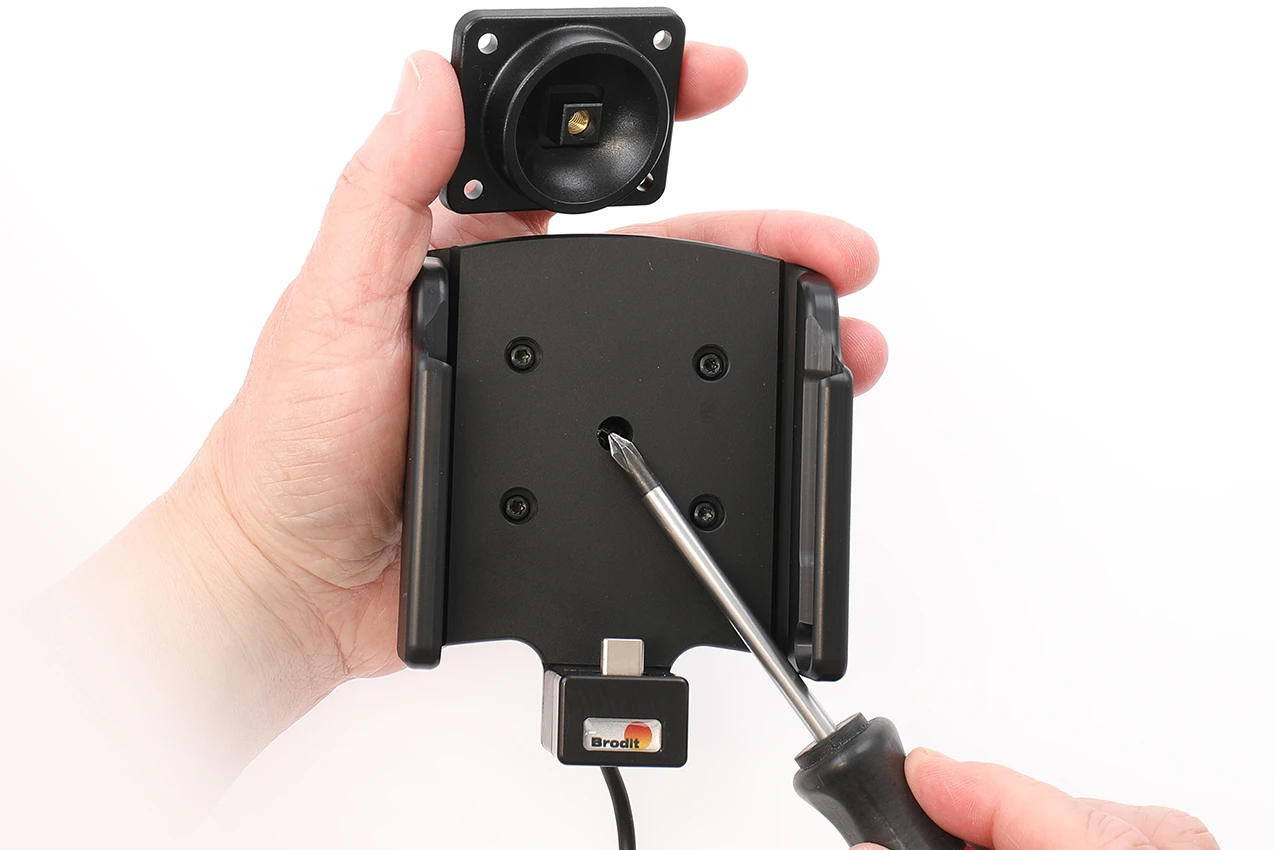 The holder is equipped with a tilt swivel so you can easily adjust the angle for better viewing, or switch between portrait and landscape mode. Tilts 17° and swivels 360°. Mounting plate 42x50 mm with 4 mm AMPS-holes. Made of high grade black ABS/Acetal plastic. Made in Sweden. For easy and optimal installation, attach the holder onto a custom ProClip Vehicle Mount, a Pedestal Mount or attach it directly to any surface.