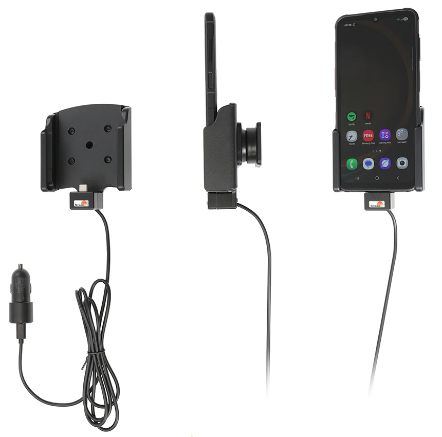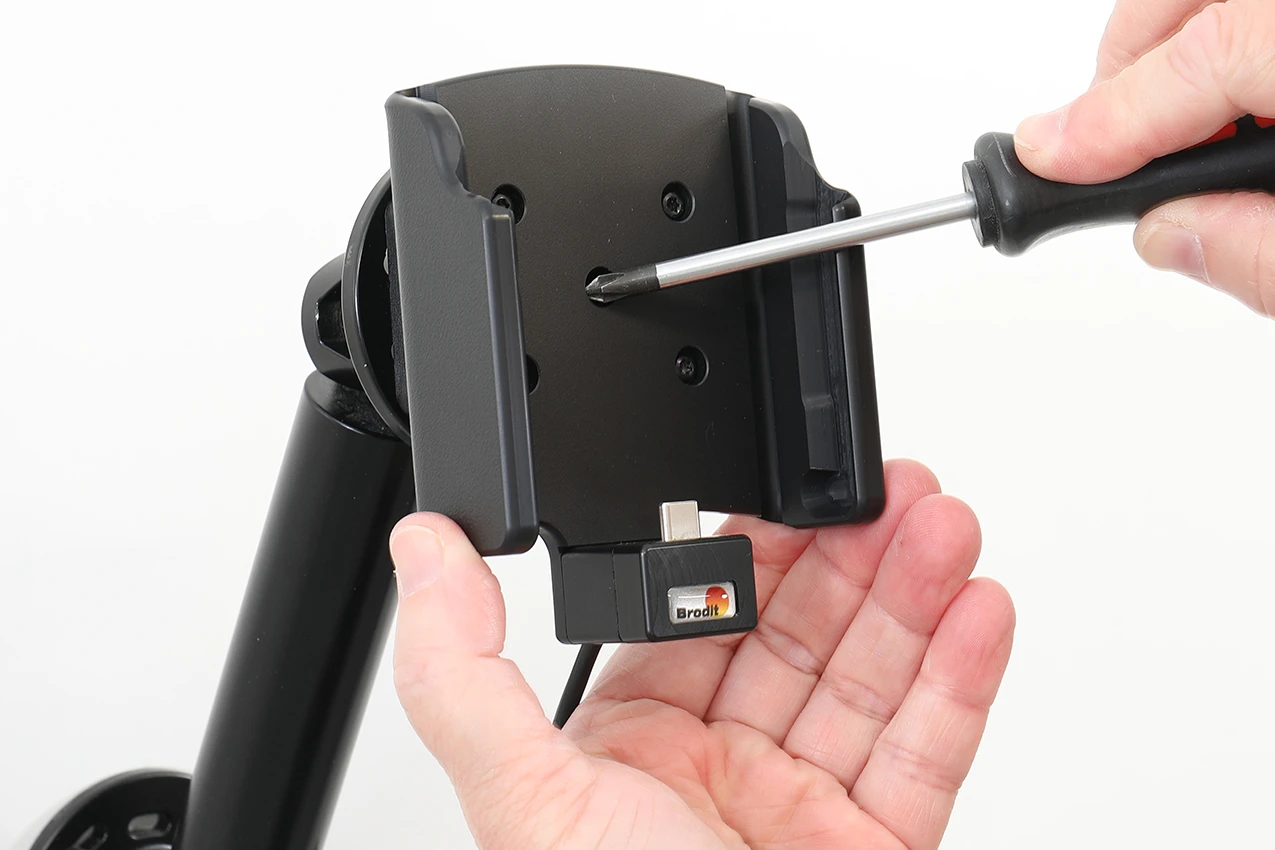Charging via USB-C connector enables for quick charging. The cig-plug adapter has two USB ports: Type-A (free for power supply of additional device) and Type-C (connected to the holder). Choose to connect the holder either to the vehicle's USB-C outlet, or use the cig-plug adapter for the 12/24V socket. 12/24Volt.