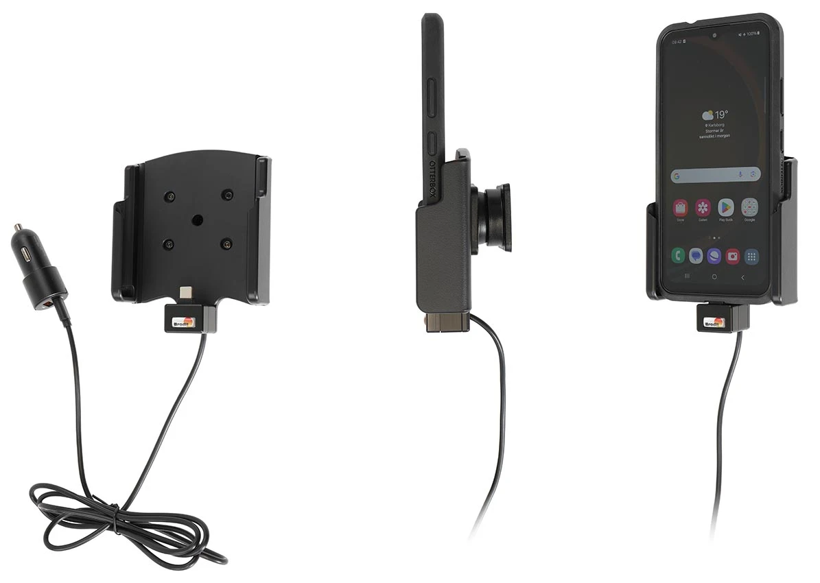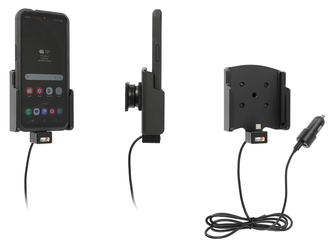 Charging via USB-C connector enables for quick charging. The cig-plug adapter has two USB ports: Type-A (free for power supply of additional device) and Type-C (connected to the holder). Choose to connect the holder either to the vehicle's USB-C outlet, or use the cig-plug adapter for the 12/24V socket. 12/24Volt.