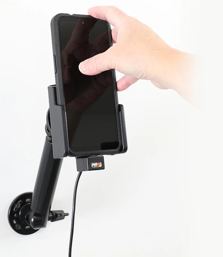 The holder is equipped with a tilt swivel so you can easily adjust the angle for better viewing, or switch between portrait and landscape mode. Tilts 17° and swivels 360°. Mounting plate 42x50 mm with 4 mm AMPS-holes. Made of high grade black ABS/Acetal plastic. Made in Sweden. For easy and optimal installation, attach the holder onto a custom ProClip Vehicle Mount, a Pedestal Mount or attach it directly to any surface.