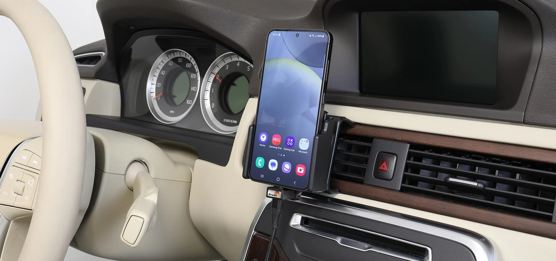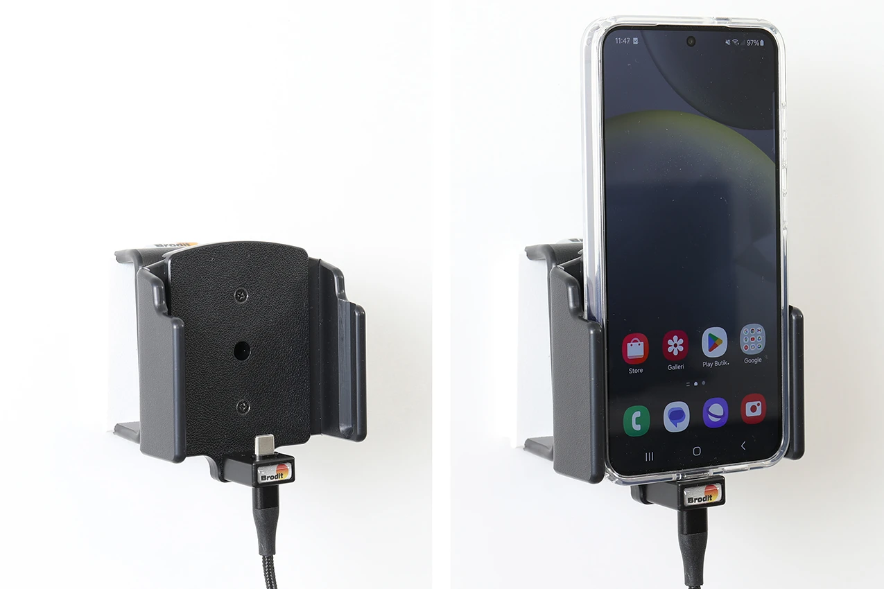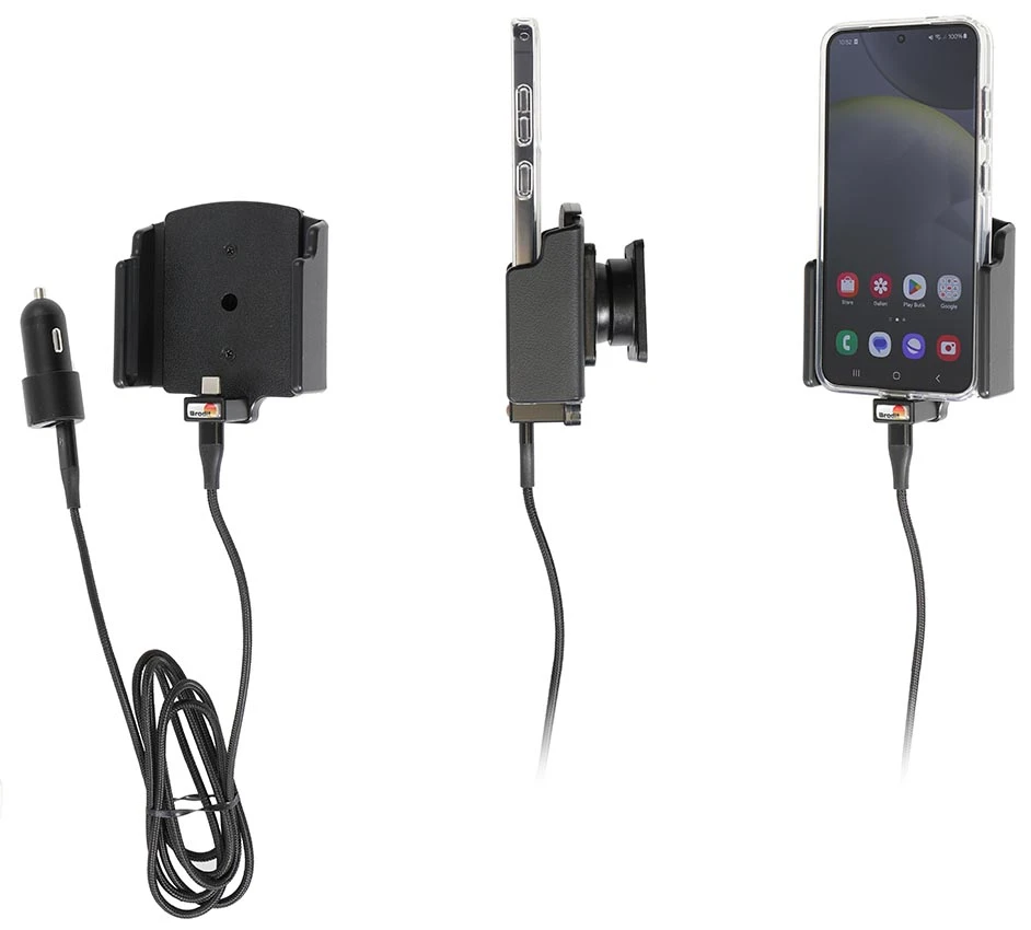 The adjustable holder fits for devices with Type-C connector, with and without skin with the following dimensions: Width: 70-83 mm, Thickness: 2-10 mm. Measure your device and compare with the holder specifications in order to make sure you have chosen the correct product (if you are using a skin: measure the device with the skin in place). Choose to connect the holder either to the vehicle's USB-C outlet, or use the Car charger for the 12/24V socket. 12/24Volt.