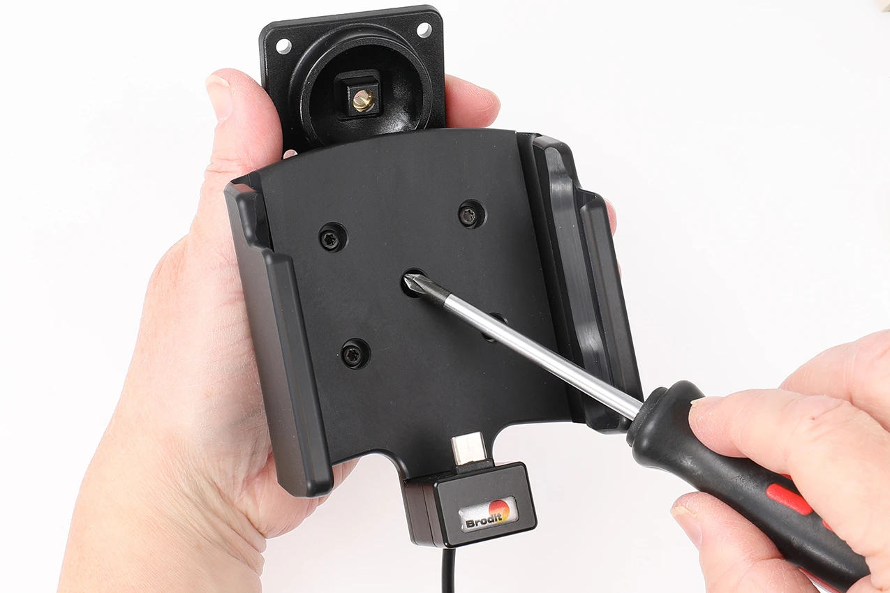 The holder is equipped with a tilt swivel so you can easily adjust the angle for better viewing, or switch between portrait and landscape mode. Tilts 17° and swivels 360°. Mounting plate 42x50 mm with 4 mm AMPS-holes. Made of high grade black ABS/Acetal plastic. Made in Sweden. For easy and optimal installation, attach the holder onto a custom ProClip Vehicle Mount, a Pedestal Mount or attach it directly to any surface.