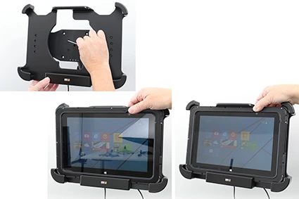 This holder is the perfect choice when you want to have your device firmly in place within easy reach. Custom fit for devices with rugged frame, with and without expansion module/handstrap. The holder is made of extra strong plastic. Attach the holder to any flat surface or a Pedestal Mount in a truck, distribution vehicle, warehouse etc. Predrilled AMPS and VESA standard holes. You have full access to the camera and all buttons and outlets when the device is in the holder.