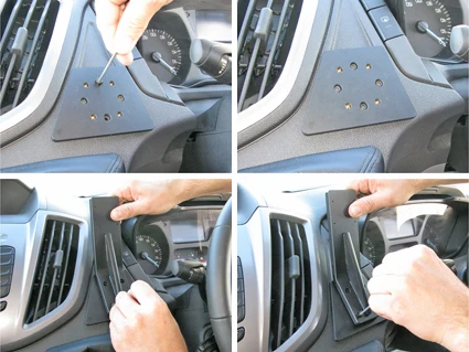 Extra strength mounting platform for installation of heavier devices. You can keep your device in a holder or attach it directly onto the mounting platform. The placement is optimized for touch screens, PDAs, taximeter screens and printers. You will have your device within easy reach, safe and convenient! The installation is quick and easy and will not damage the interior. Detailed installation instructions included.