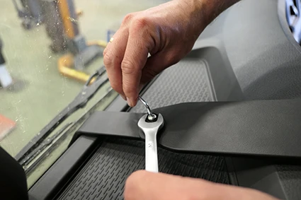 Use the enclosed alcohol pad to clean the area where the ProClip is to be installed. Peel off the adhesive tape cover on the ProClip. Hook the lower edge of the ProClip over the dashboard overhang.