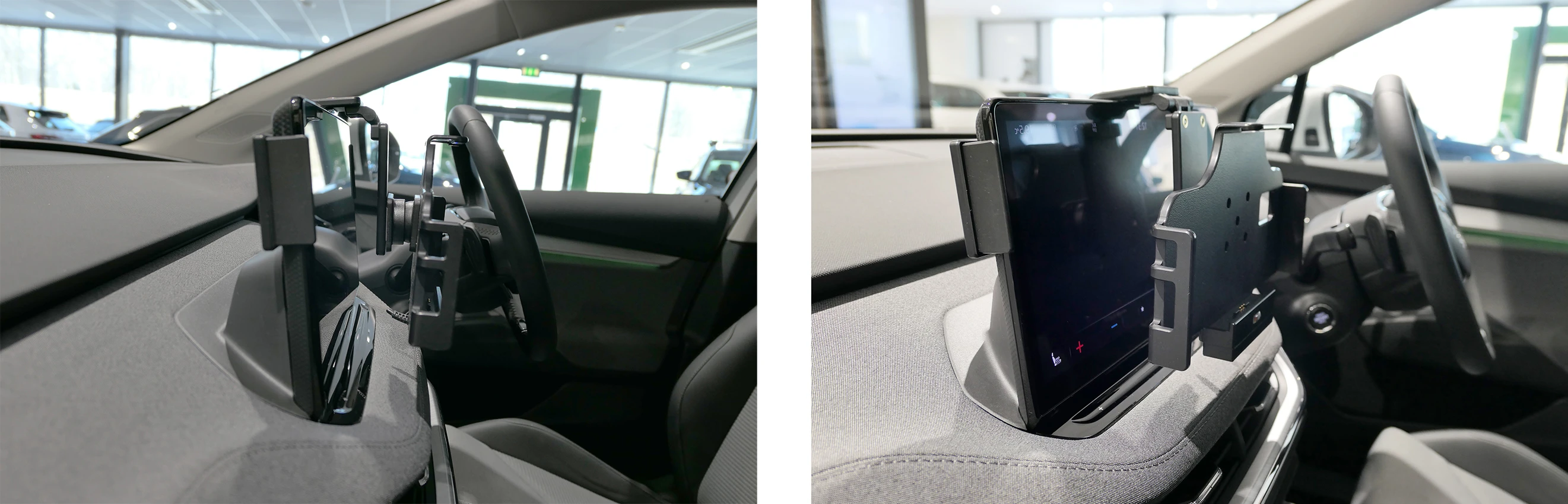 Extra strength ProClip mounting platform with hinge feature provides easy access to both the display and the installed device. Designed for installation of larger handheld devices, such as surfpads, for every day professional use. Keep your device installed in your vehicle, and you will get a more efficient, safe and comfortable work day. Onto the ProClip you can attach any accessory, such as a holder for a screen, surfpad, printer, handheld computer, mobile phone etc. The position has been carefully chosen in order offer an installation of your device within easy sight and rech.