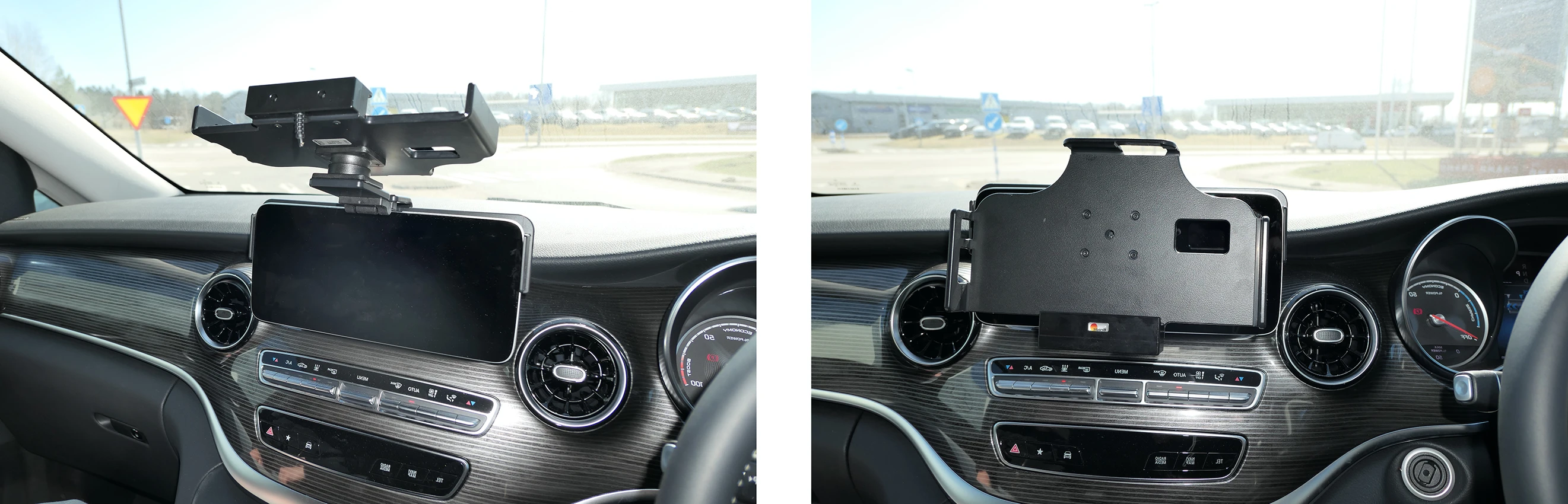 Robust and strong mount with hinge-function. Enables for installation of an addition device in front of the screen in your car while remaining the access to the screen. You get the installed device within easy sight and reach, and can easily lift it up in order to get access to the screen in your car. The hinge opens 0-180° but the normal opening angle is abour 90° depending on the height of the holder/device. 90x86x20 mm.