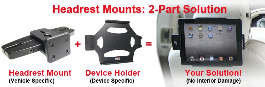 Brodit's headrest mount is car specific and works as a mounting platform. You will also need a holder for the unit you wish to mount. You can easily find holders to install by using the device search feature on our website. All Brodit's holders can be attached onto the headrest mount, but some holders for surfpads are crash tested and approved for use on Brodit's headrest mount (look for crash test labeling).