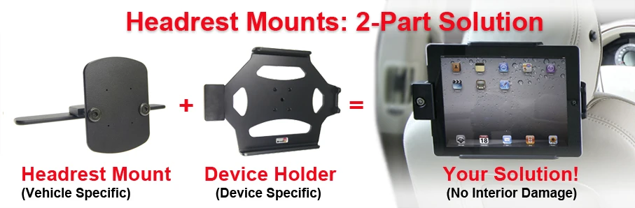 Brodit's headrest mount is car specific and works as a mounting platform. You will also need a holder for the unit you wish to mount. You can easily find holders to install by using the device search feature on our website. All Brodit's holders can be attached onto the headrest mount, but some holders for surfpads are crash tested and approved for use on Brodit's headrest mount (look for crash test labeling).