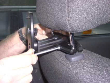Tighten the screws on the frontside of the head rest mount, using the enclosed tool. Screw until the head rest mount is properly in place.