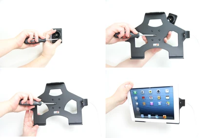 This holder for cable attachment can, combined with an Apple cable, be used for charging your iPad. First you mount the cable into place onto the holder, then it connects automatically to your iPad every time you place the device in the holder.