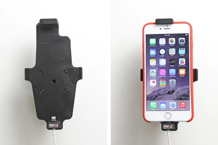 This holder for cable attachment can, combined with an Apple cable, be used for charging your iPhone. First you mount the cable into place onto the holder, then it automatically connects to your iPhone every time you place the device in the holder.