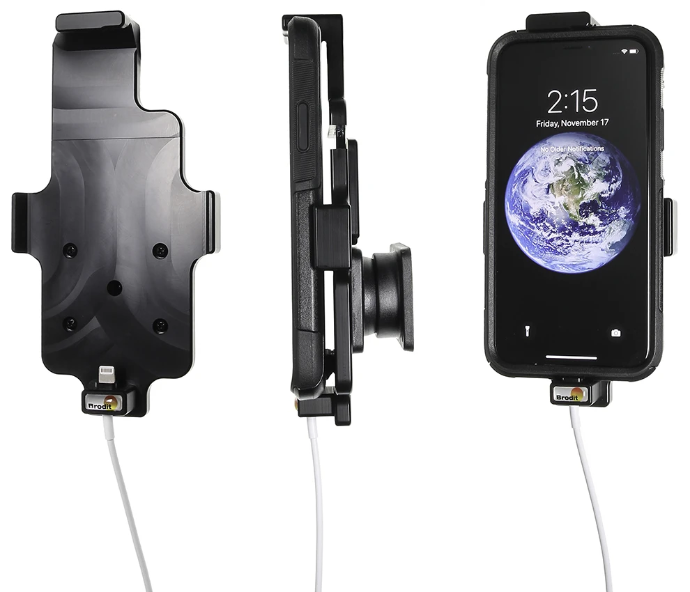 The cable attachment holder can be combined with the Apple original Lightning cable that came with your iPhone (Apple article. no. MD818AM/A). If using the Lightning-to-USB-cable with the holder, you can charge you iPhone by connecting it to the car’s USB socket, or use it with a USB/cig-plug adapter for the car’s 12V socket.