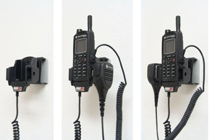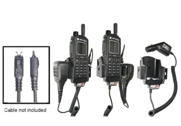 Holder with cable plug attachment. To be used with Motorolas original cable The cable is easy to attach to the holder, and then the cable connects to the radio automatically when you put your unit in the holder so you do not have to connect it manually each time. (Cable not included).