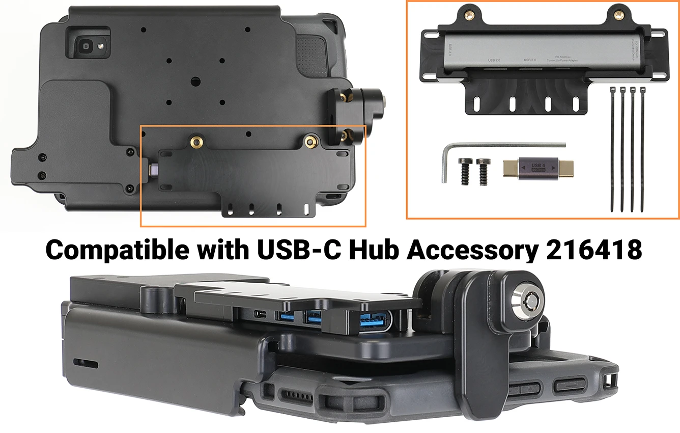 The Zebra ET4x series holders from Brodit are designed to withstand frequent wear and tear in professional every day use, providing a more productive working day and better working environment with your device within sight and reach. Safe, efficient and convenient! To get more out of your holder, you can choose both a power supply or accessories such as a USB hub.
