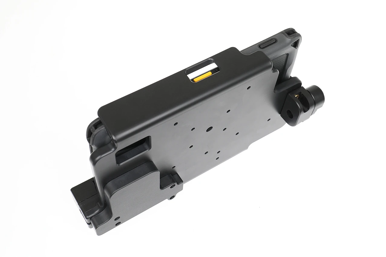 The cradle is customized with a perfect fit. It has a robust design for use in a normal forklift environment. You have full access to the camera,scanner, buttons and ports while docked. Easy one-hand insertion and removal.