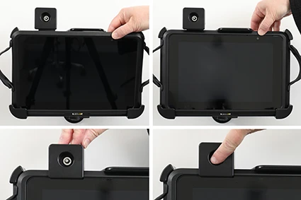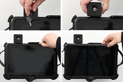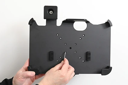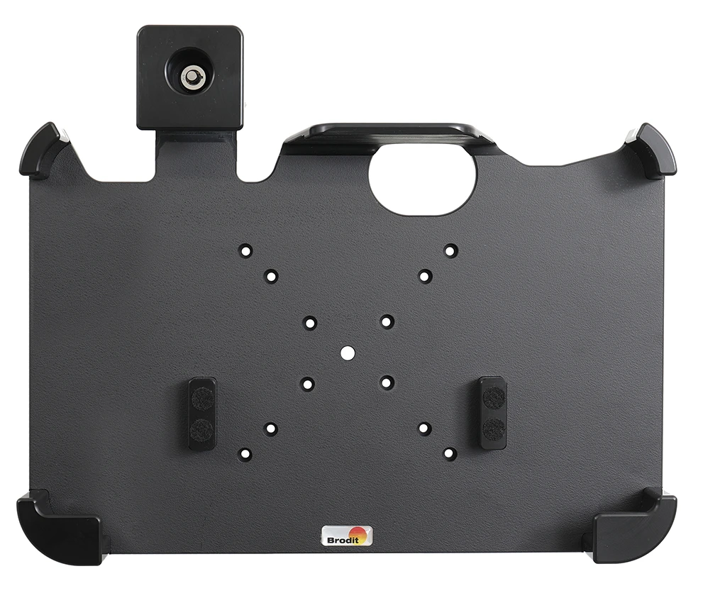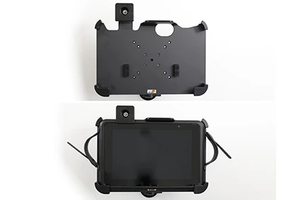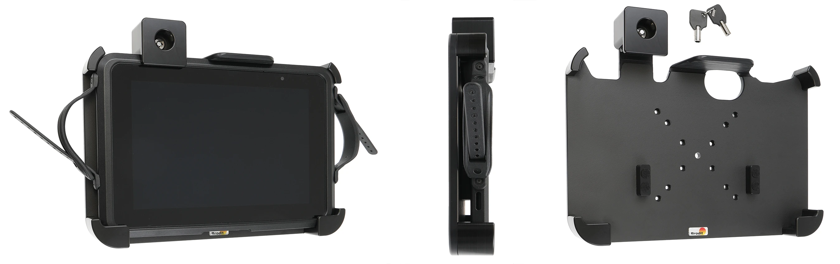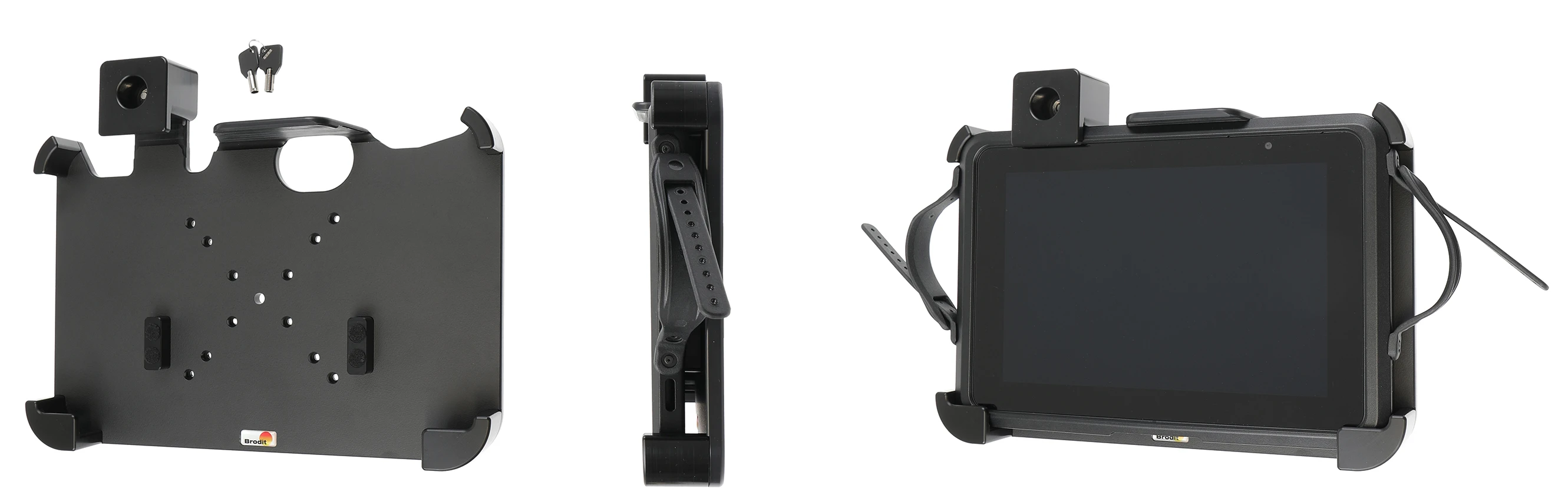 This holder is the perfect choice when you want to have your device securely locked in place and still easy accessible. Custom fit for devices with Integrated 1D/2D barcode Scanner. The holder has an extra robust design for an extra secure fit and is equipped with a lock. In order to remove the device from the holder you need a key (two keys are included). Attach the holder to any flat surface or a Pedestal Mount in a truck, distribution vehicle, warehouse etc. Predrilled AMPS and VESA 75/100 standard holes. You have full access to the camera and all buttons and outlets when the device is in the holder.