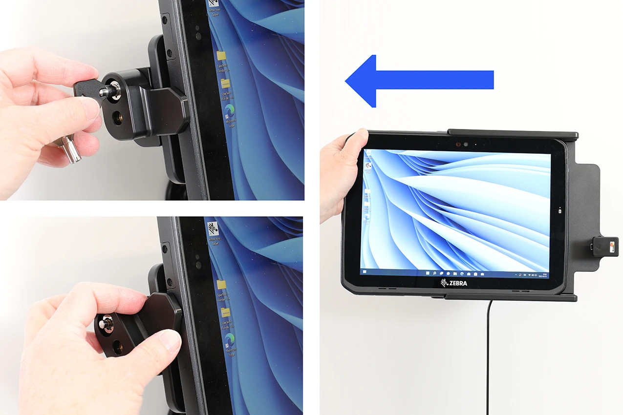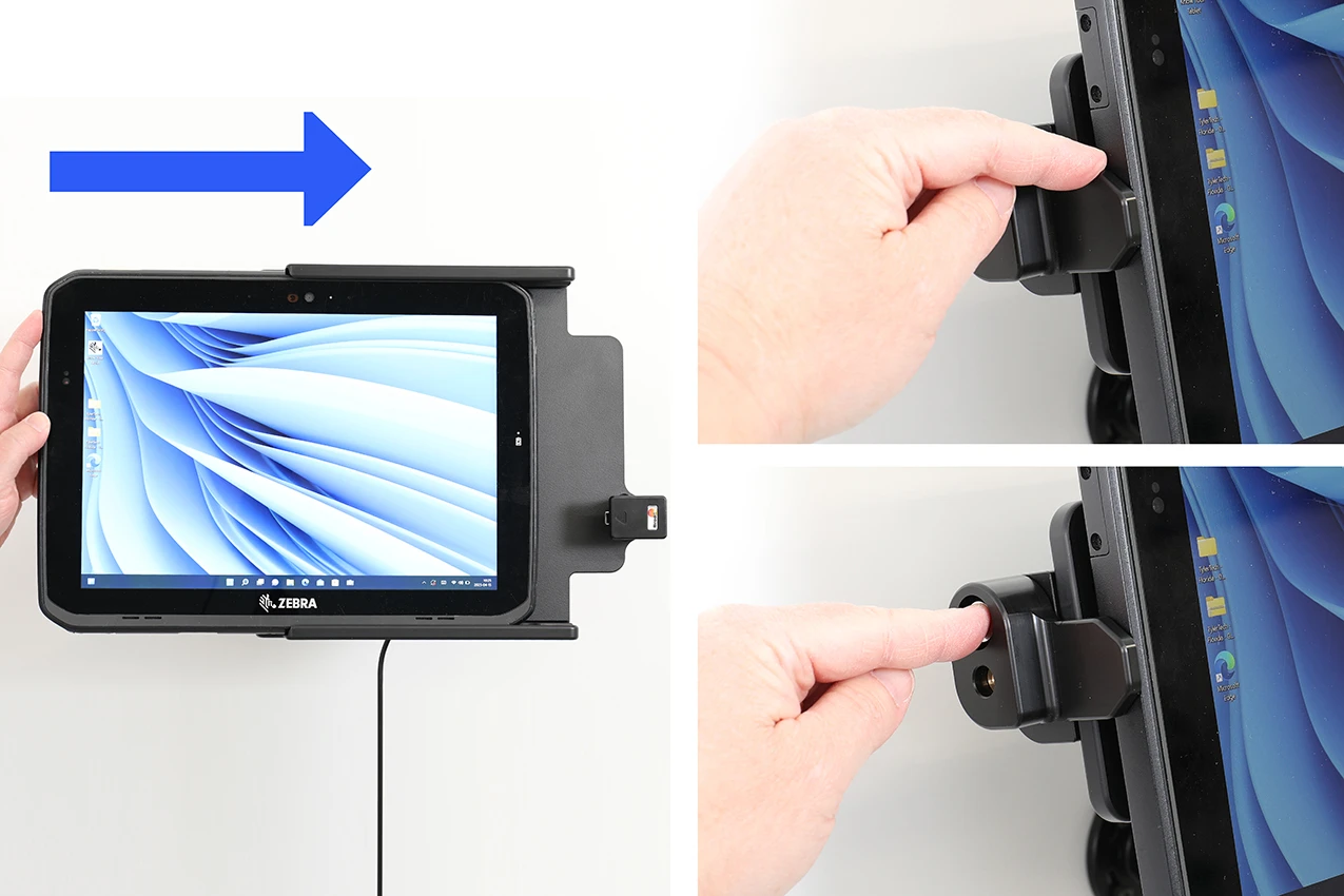 The Zebra ET8x series holders from Brodit are designed to withstand frequent wear and tear in professional every day use, providing a more productive working day and better working environment with your device within sight and reach. Safe, efficient and convenient! To get more out of your holder, you can choose both a power supply or accessories such as a USB hub.