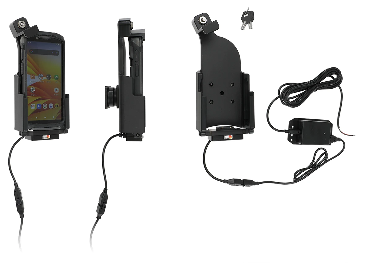 This holder is the perfect choice when you want to secure your device and still have it easy accessable, while getting the battery charged. Customed with a perfect fit for device with original boot, with or without handstrap. The holder has an extra robust design for an extra secure fit, and is equipped with a lock. In order to remove the device from the holder you need a key (two keys are included). Easy one-hand insertion and removal. You have full access to the camera and all buttons and outlets when the device is in the holder.