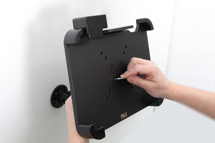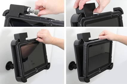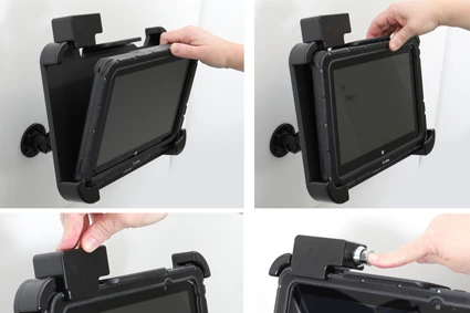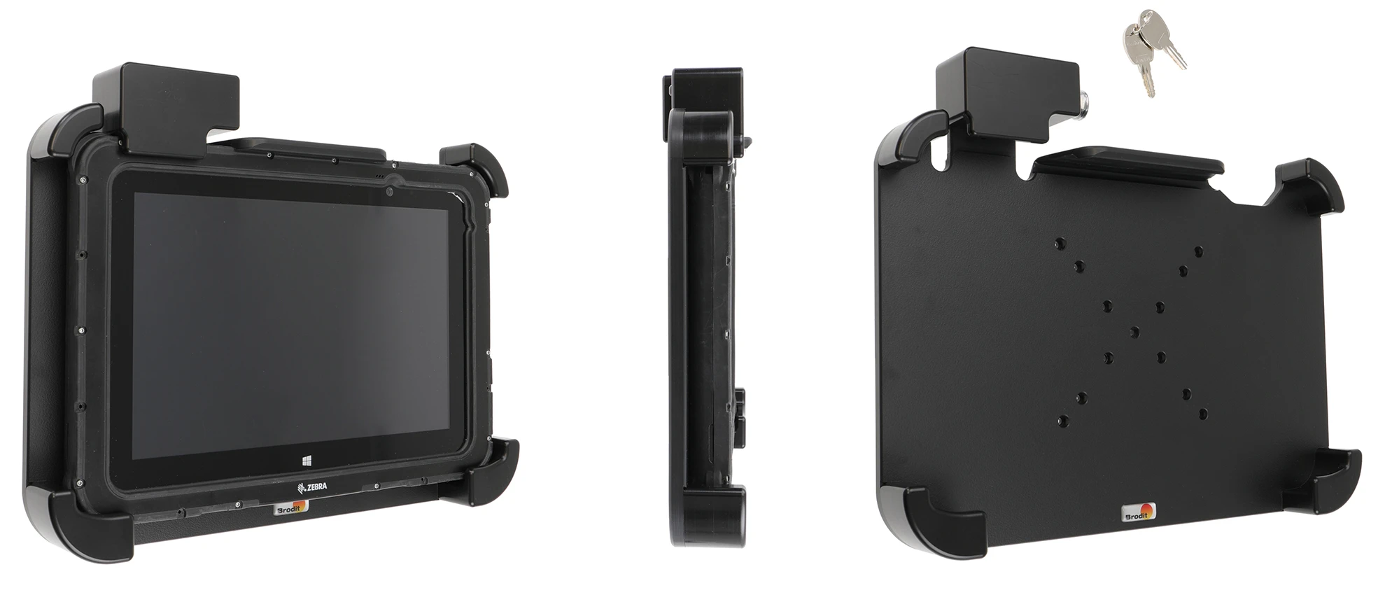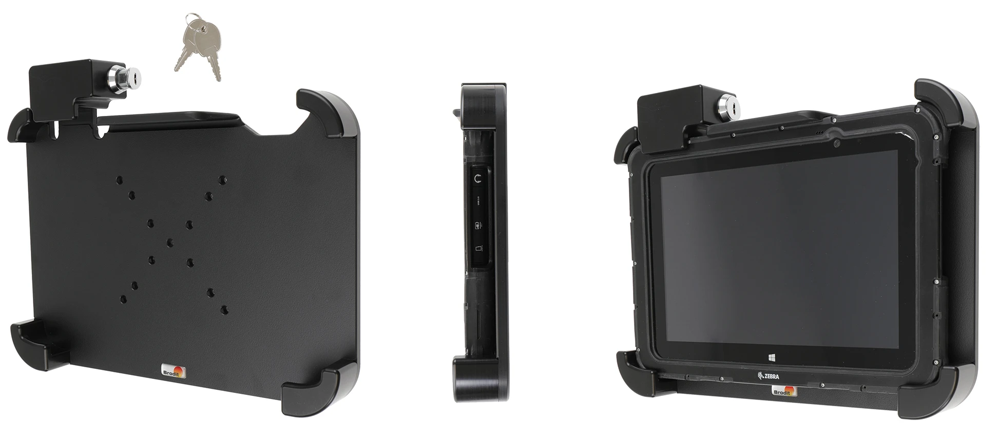 This holder is the perfect choice when you want to have your device securely locked in place and still easy accessible. The holder is made of extra strong plastic and is equipped with a lock. In order to remove the device from the holder you need a key (two keys are included). Attach the holder to any flat surface or a Pedestal Mount in a truck, distribution vehicle, warehouse etc. Predrilled AMPS and VESA standard holes. You have full access to the camera and all buttons and outlets when the device is in the holder.