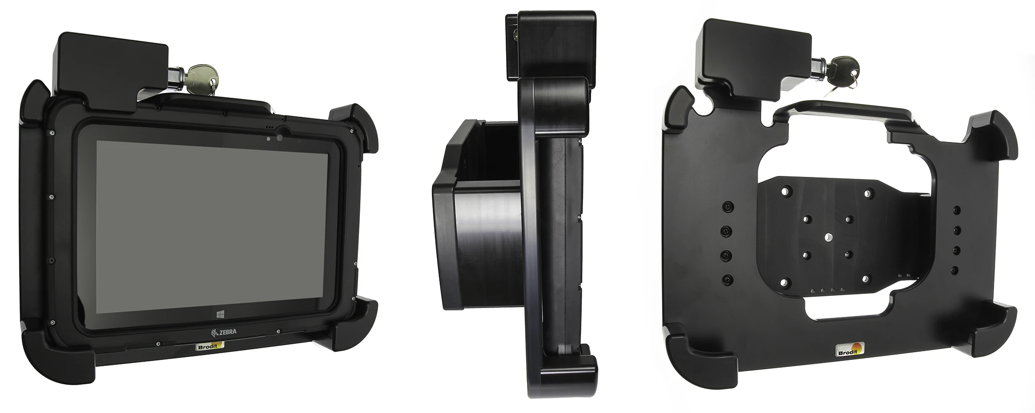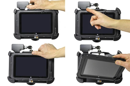 This holder is the perfect choice when you want to have your device firmly in place within easy reach. Custom fit for devices with rugged frame, with and without expansion module/handstrap. The holder is made of extra strong plastic. Attach the holder to any flat surface or a Pedestal Mount in a truck, distribution vehicle, warehouse etc. Predrilled AMPS and VESA standard holes. You have full access to the camera and all buttons and outlets when the device is in the holder.