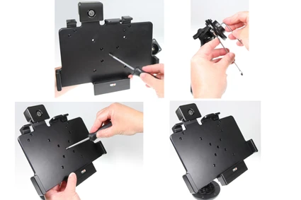 The holder is equipped with a tilt swivel so you can easily adjust the angle for better viewing, or switch between portrait and landscape mode. Tilts 15° and swivels 360°. Mounting plate 42x50 mm with predrilled AMPS-holes. Made in Sweden. Made of high grade ABS and Acetal plastic. Color: Black. Devices should not be installed onto a vehicle's dashboard if blocking the view or key controls. An installation of a device in a vehicle is always done on the customer's own responsibility.