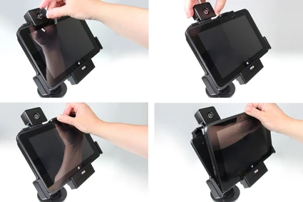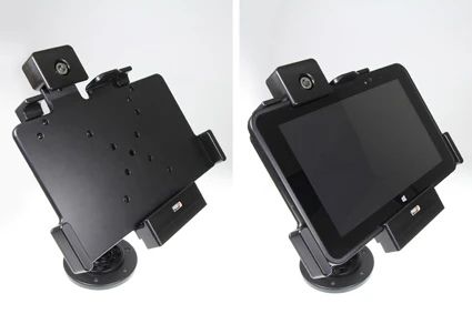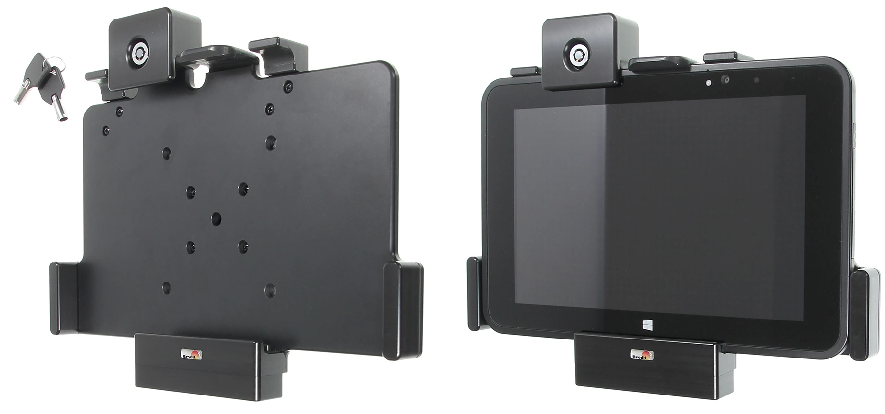 This holder is the perfect choice when you want to have your device securely locked in place and still easy accessible. Custom fit for bare devices (NOT for use with expansion module/handstrap/rugged frame). The holder is made of extra strong plastic and is equipped with a lock. In order to remove the device from the holder you need a key (two keys are included). Attach the holder to any flat surface or a Pedestal Mount in a truck, distribution vehicle, warehouse etc. You have full access to the camera and all buttons and outlets when the device is in the holder.