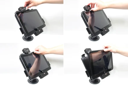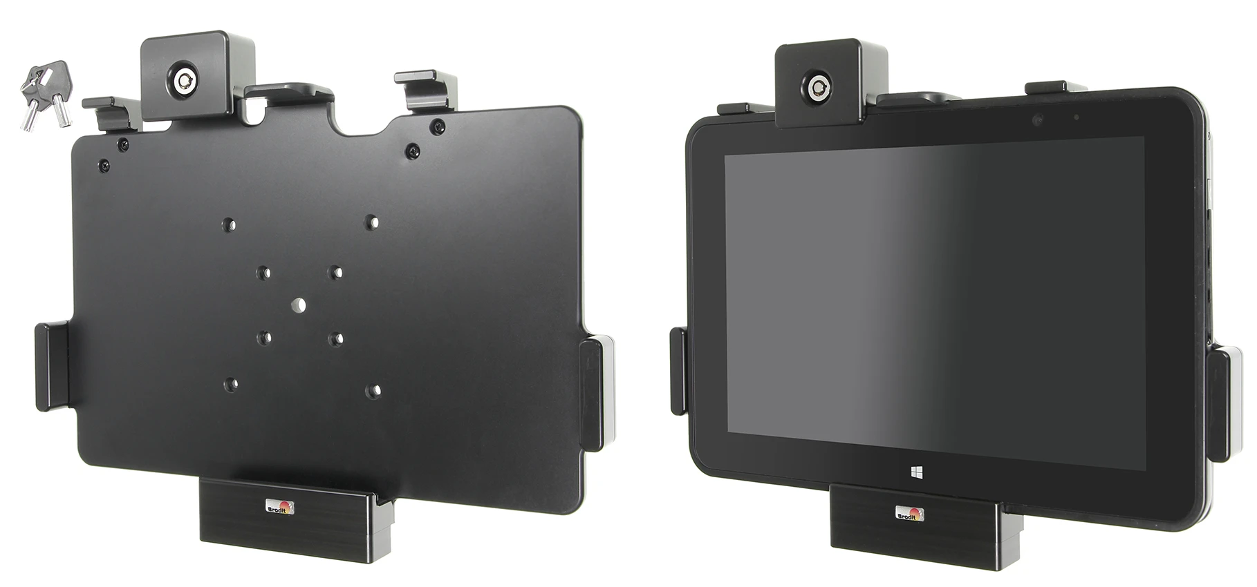 This holder is the perfect choice when you want to have your device securely locked in place and still easy accessible. Custom fit for bare devices (NOT for use with expansion module/handstrap/rugged frame). The holder is made of extra strong plastic and is equipped with a lock. In order to remove the device from the holder you need a key (two keys are included). Attach the holder to any flat surface or a Pedestal Mount in a truck, distribution vehicle, warehouse etc. Predrilled AMPS and VESA standard holes. You have full access to the camera and all buttons and outlets when the device is in the holder.