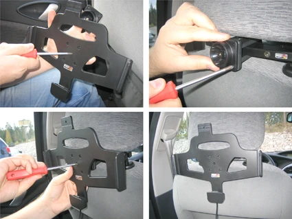 Tablets should not be installed onto a car's dashboard if blocking the view or key controls. ProClip is designed for use with smaller devices like smartphones. If you want to place a tablet onto a dashboard, each combination of tablet-car must be examined in detail by yourself in order to determine if such an installation is possible in the specific case. Brodit will not give any recommendations for such installations. An installation of a tablet onto a vehicle's dashboard is always done on the customer's own responsibility. Brodit recommends using tablets on the car's headrest, installed onto a Brodit headrest mount.