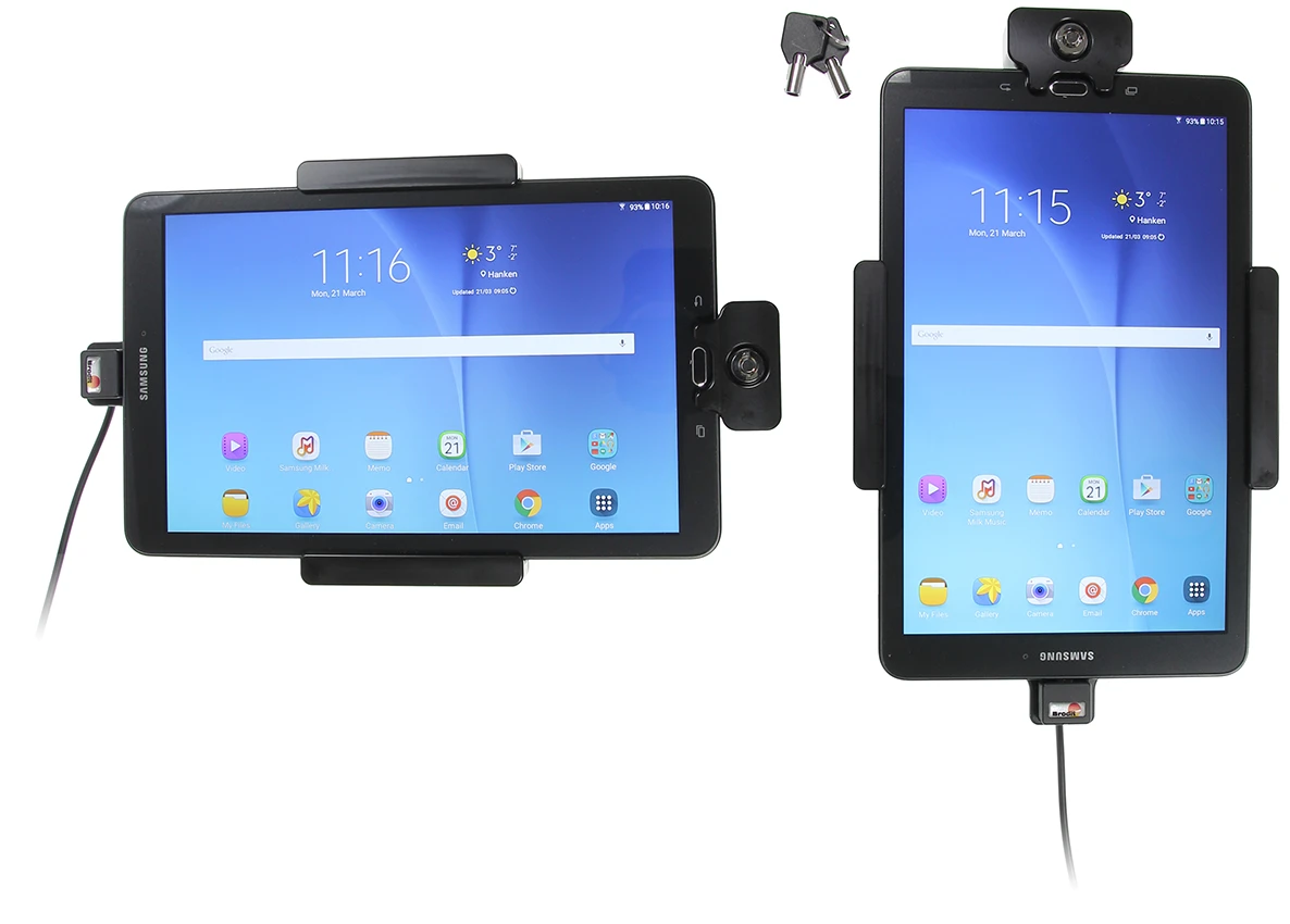 The holder with lock is to be used when you want to have your tablet safely locked in place and still easy accessible, for example in shops, exhibitions, events, trucks, boats etc. The holder has a built-in lock, in order to take the device out from the holder you need a key (2 keys included).