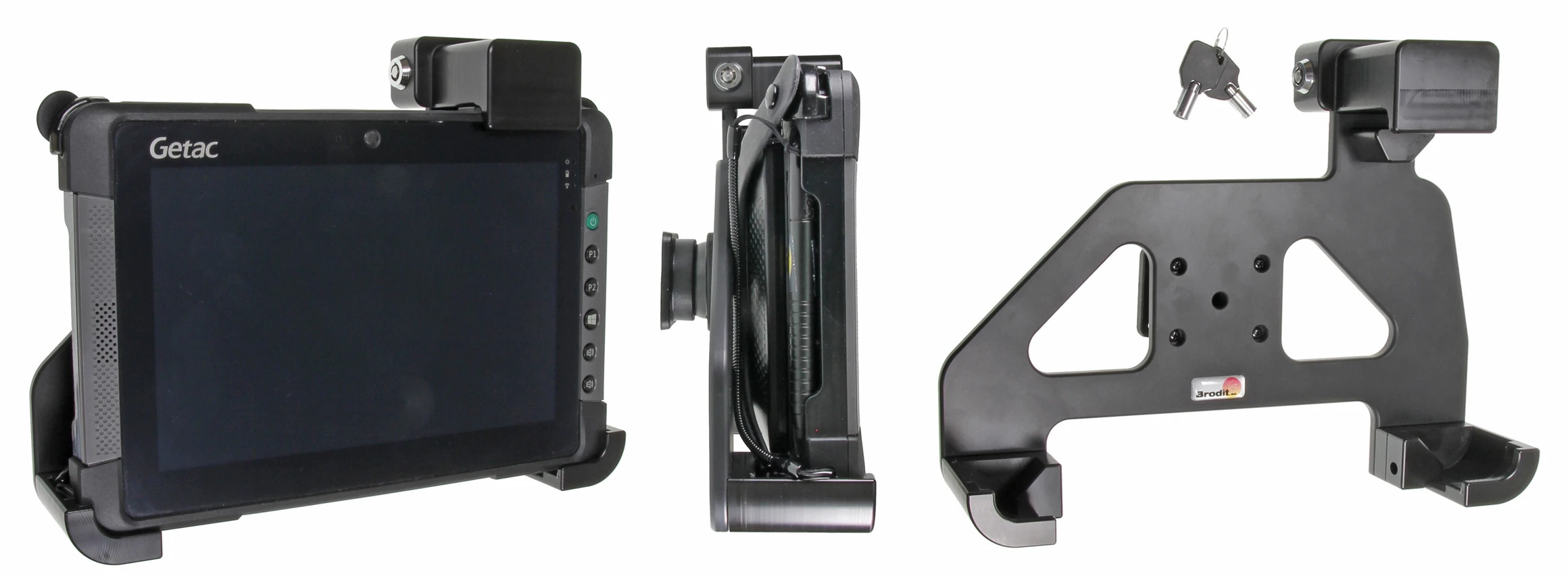 The holder is also perfect for use in stores, at exhibitions and any place where you want to use your Getac without having it easy removable. The holder is made of extra strong plastic and is equipped with a lock. In order to remove the Getac from the holder you need the key, two keys are included. Fits units both with and without handstrap.