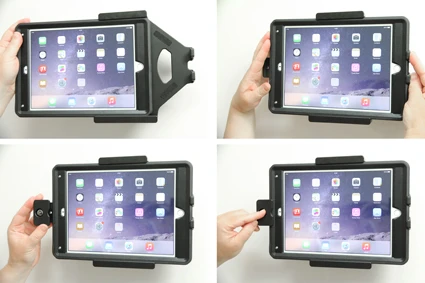 The holder is also perfect for use in stores, at exhibitions and any place where you want to use your iPad without having it easy removable. The holder is made of extra strong plastic and is equipped with a lock. In order to remove the iPad from the holder you need the key, two keys are included. The holder is mounted onto a tilt swivel. This mean that you can adjust the angle in order to avoid light reflection on the screen. You can easily switch between portrait and landscape mode by turning the holder into desired position.