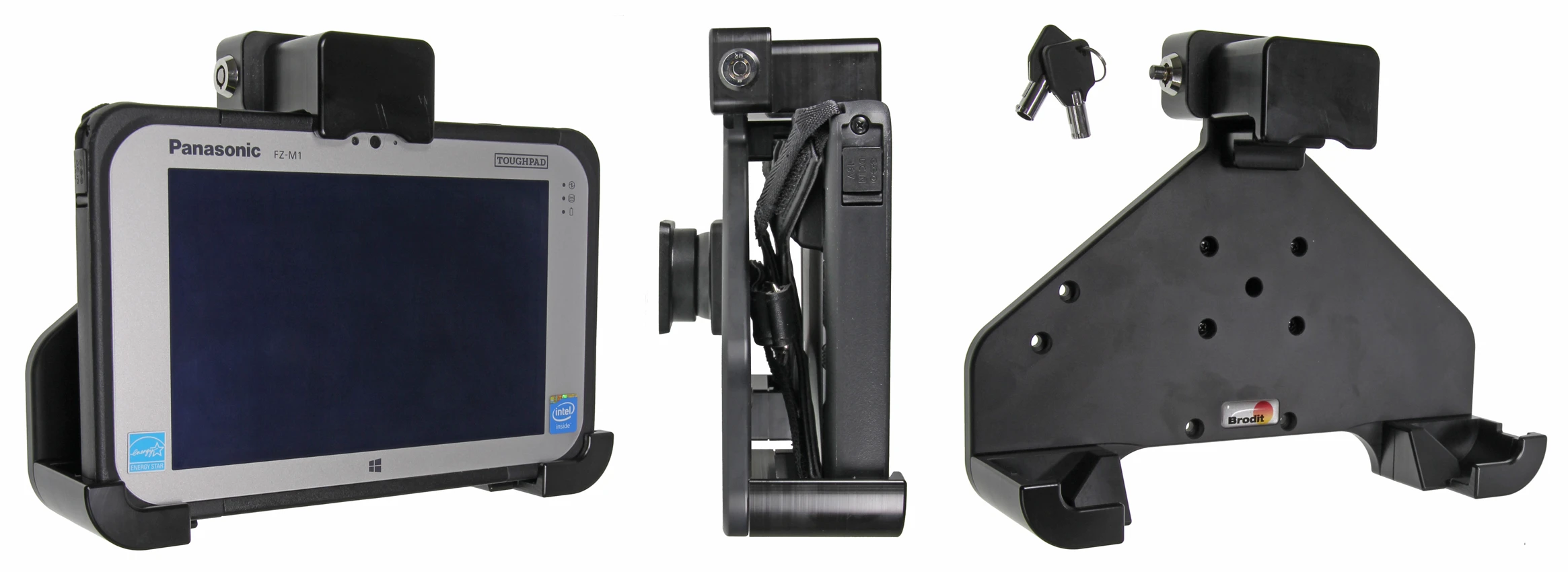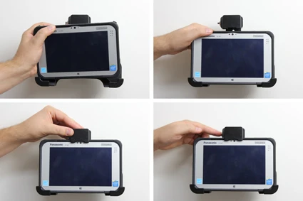 The holder is also perfect for use in stores, at exhibitions and any place where you want to use your Panasonic without having it easy removable. The holder is made of extra strong plastic and is equipped with a lock. In order to remove the Panasonic from the holder you need the key, two keys are included. Fits units both with and without handstrap.