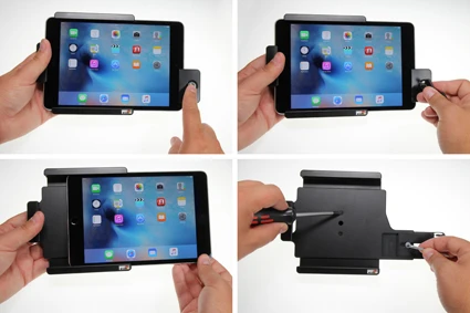 Measure your device and compare with the holder specifications in order to make sure you have chosen the correct product. The holder is equipped with a key-lock for an extra secure fit. To remove the device from the holder you will need a key, two keys are included.