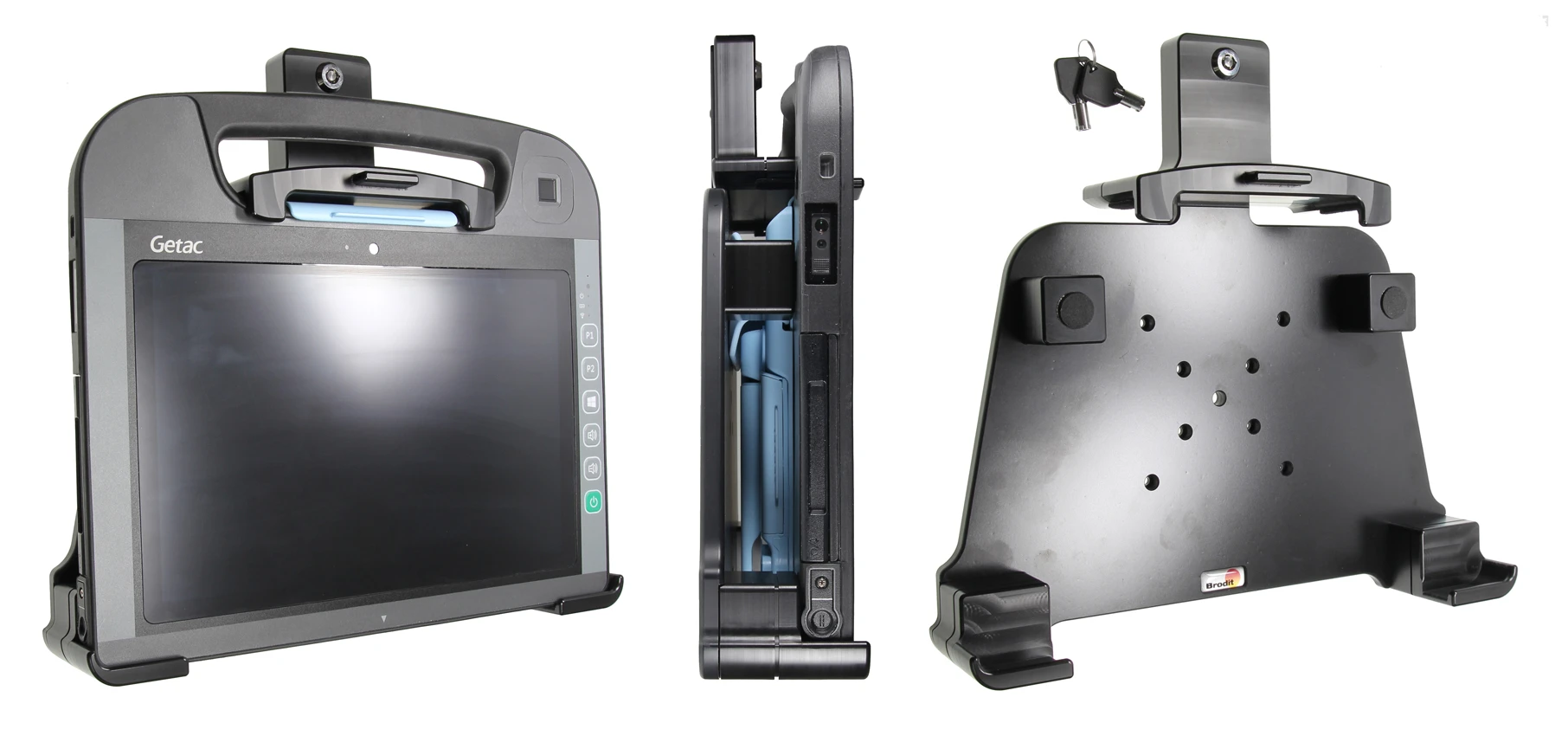 The holder is also perfect for use in stores, at exhibitions and any place where you want to use your Getac without having it easy removable. The holder is made of extra strong plastic and is equipped with a lock. In order to remove the Getac from the holder you need the key, two keys are included. Fits units both with and without handstrap.