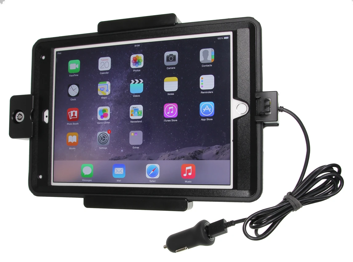 An installation of a tablet onto a vehicle’s dashboard is always done on the customer’s own responsibility. Brodit recommends to use tablets on the car’s headrest, installed onto a Brodit headrest mount.