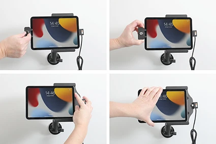 This holder is to be used when you will secure your device and still have it easy accessable. Perfect for use in stores, at exhibitions and any place where you want to use your device without having it easy removable. In order to remove the tabletfrom the holder you need the key or a certain amount of violence is required. The holder includes a lock and two keys.