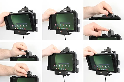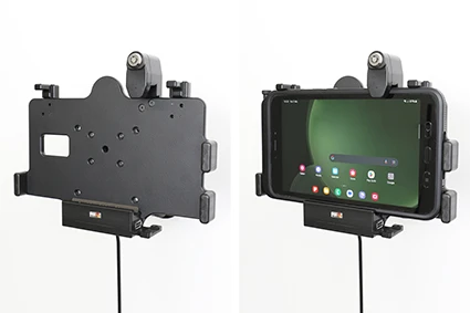 Use an active holder for your Galaxy Tab Active and you will always have a freshly charged battery! The holder provides a neat and comfortable installation - safe and convenient. The holder is equipped with a cig-plug for connection to the vehicle's 12/24 Volt socket. 3A charging. Charging via pogo plug. The holder is equipped with a USB-Host port so you can connect an accessory.