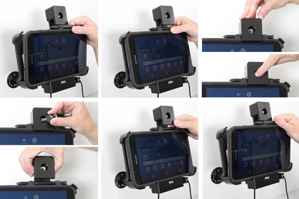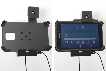 The active holder for fixed installation is to be connected inside the dashboard. It provides a discreet and neat installation without any cables hanging over the interior. Safe and convenient! The holder is mounted onto a tilt swivel. This mean that you can adjust the angle in order to avoid light reflection on the screen. You can easily switch between portrait and landscape mode by turning the holder into desired position.Tilts 17° and swivels 360°. It is easy to put the device into place in the holder, and to take it with you when leaving the car. Mountingplate 42x50 mm with 4 mm AMPS-holes. Made of high grade black ABS/Acetal plastic. Color: black. Made in Sweden. The product is E-approved. Connect the power cable with a 2 A fuse. Professional installation recommended. 12/24 Volt. Attach the holder to any flat surface or a Pedestal Mount in a truck, distribution vehicle, warehouse etc.