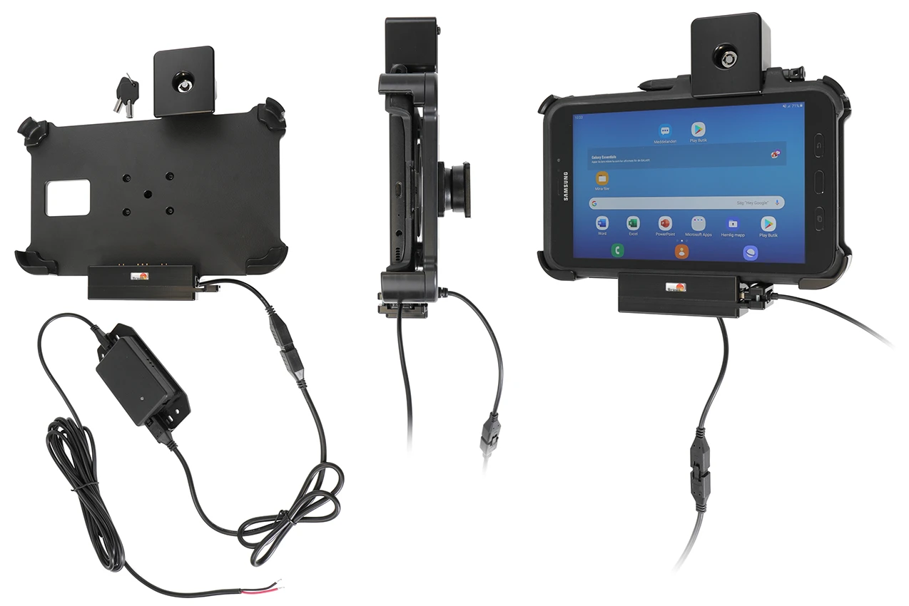 This holder is the perfect choice when you want to have your device securely locked in place and still easy accessible. Custom fit for device with OtterBox uniVERSE case. The holder has an extra robust design for an extra secure fit and is equipped with a lock. In order to remove the device from the holder you need a key (two keys are included). With USBG host port.