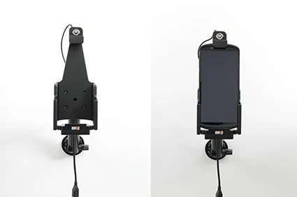 This holder is the perfect choice when you want to secure your device and still have it easy accessable, while getting the battery charged. Customed with a perfect fit for device without original boot. The holder has an extra robust design for an extra secure fit, and is equipped with a lock. In order to remove the device from the holder you need a key (two keys are included). Easy one-hand insertion and removal. You have full access to the camera and all buttons and outlets when the device is in the holder.