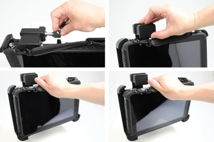 The holder is also perfect for use in stores, at exhibitions and any place where you want to use your unit without having it easy removable. The holder is made of extra strong plastic and is equipped with a lock. In order to remove the unit from the holder you need the key, two keys are included. The holder is mounted onto a tilt swivel. This mean that you can adjust the angle in order to avoid light reflection on the screen. You can easily switch between portrait and landscape mode by turning the holder into desired position.
