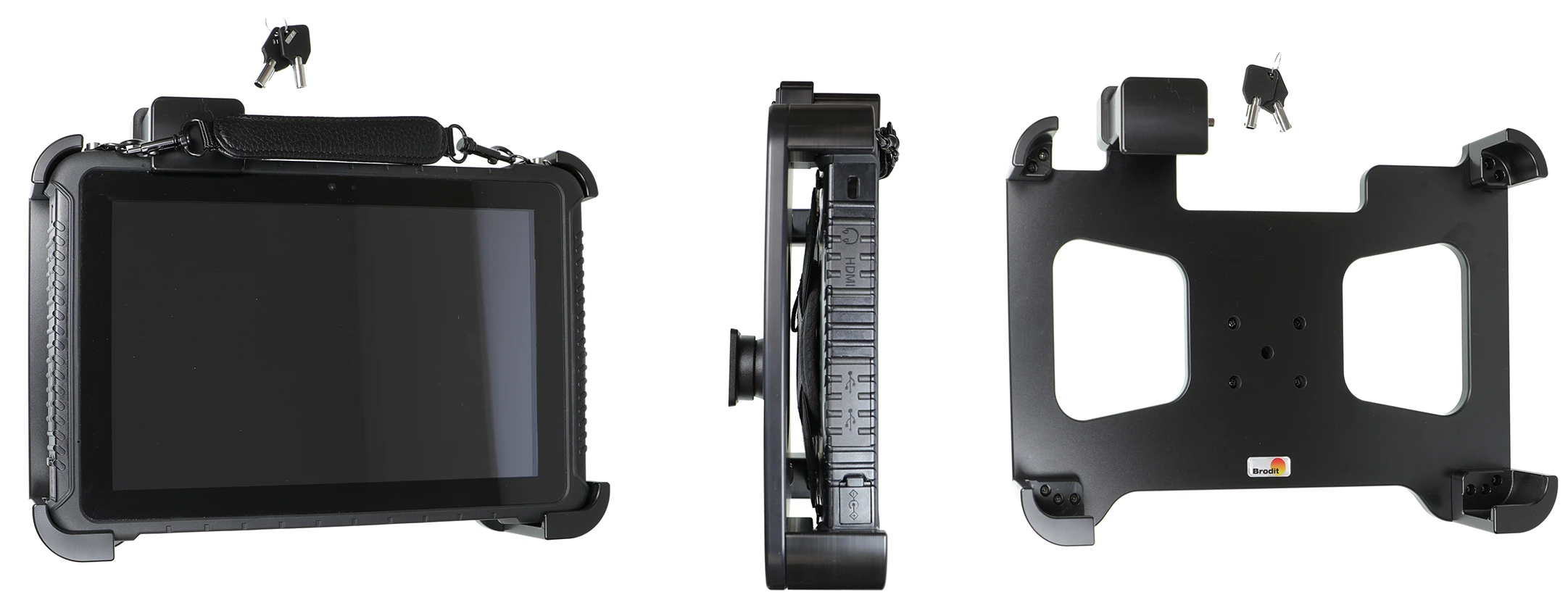 An installation of a tablet onto a vehicle’s dashboard is always done on the customer’s own responsibility. Brodit recommends to use tablets on the car’s headrest, installed onto a Brodit headrest mount.