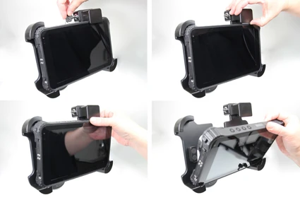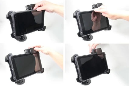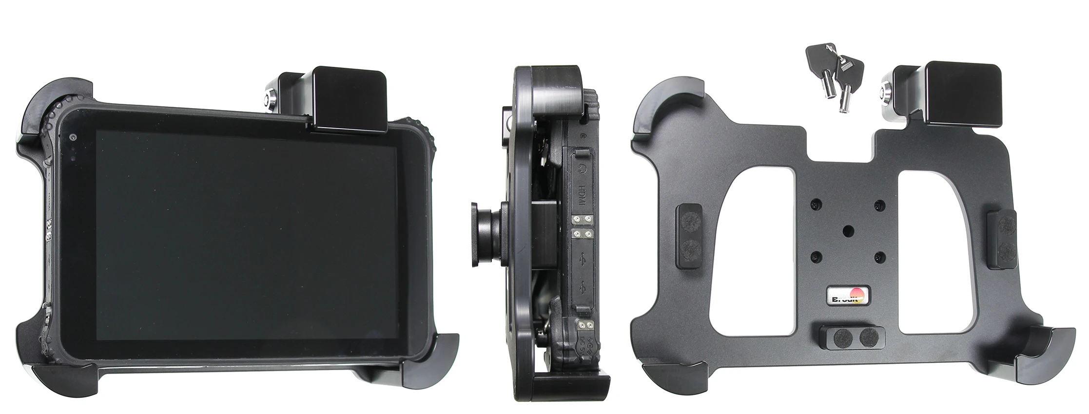 This holder is the perfect choice when you want to have your device securely locked in place and still easy accessible. The holder is made of extra strong plastic and is equipped with a lock. In order to remove the device from the holder you need a key (two keys are included). Attach the holder to any flat surface or a Pedestal Mount in a truck, distribution vehicle, warehouse etc. You have full access to the camera and all buttons and outlets when the device is in the holder.